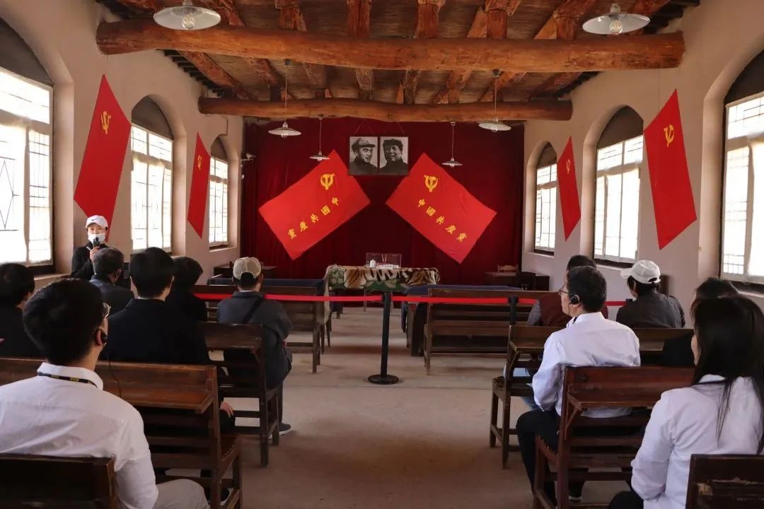 在党的七届二中全会旧址前,全体党员同志高举右拳,面对党旗庄严宣誓,重温入党誓词,郑重许下对党忠诚、永不叛党的铮铮誓言,表达为党和人民奋斗终身的坚定决心。
